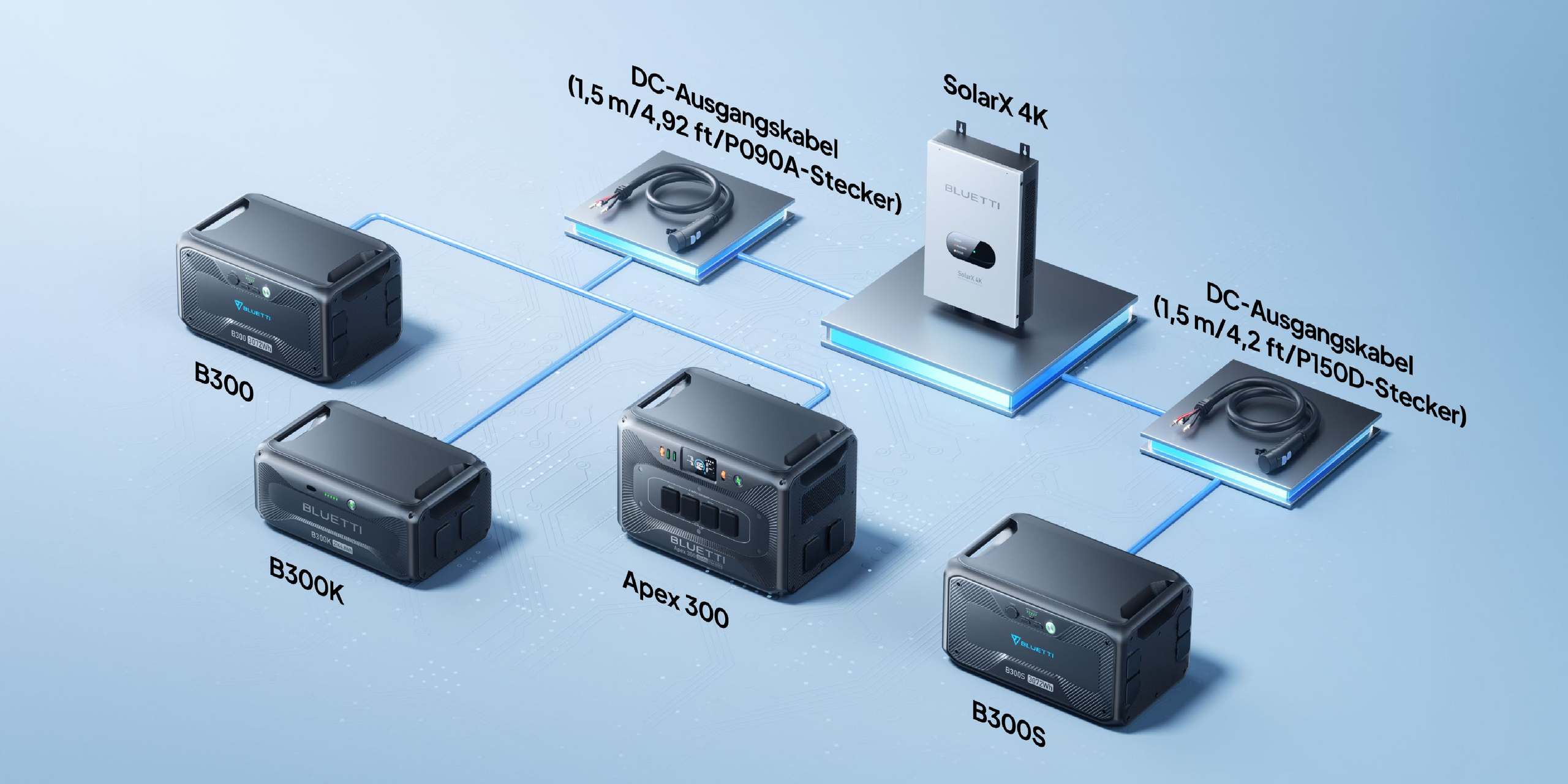 ● Akkupacks: B300K, B300, B300S, B4810, B1210, B1232. WICHTIG: Achten Sie darauf, dass Sie für jedes Gerät das richtige Verbindungskabel verwenden. Der AC300 benötigt eine ARM-Version der Serie 4037, während der AC500 die Serie 4048 benötigt. Für Details zum Update kontaktieren Sie uns bitte unter sale-de@bluettipower.com mit Ihrem Produktmodell, der Seriennummer und der aktuellen ARM-Version. -