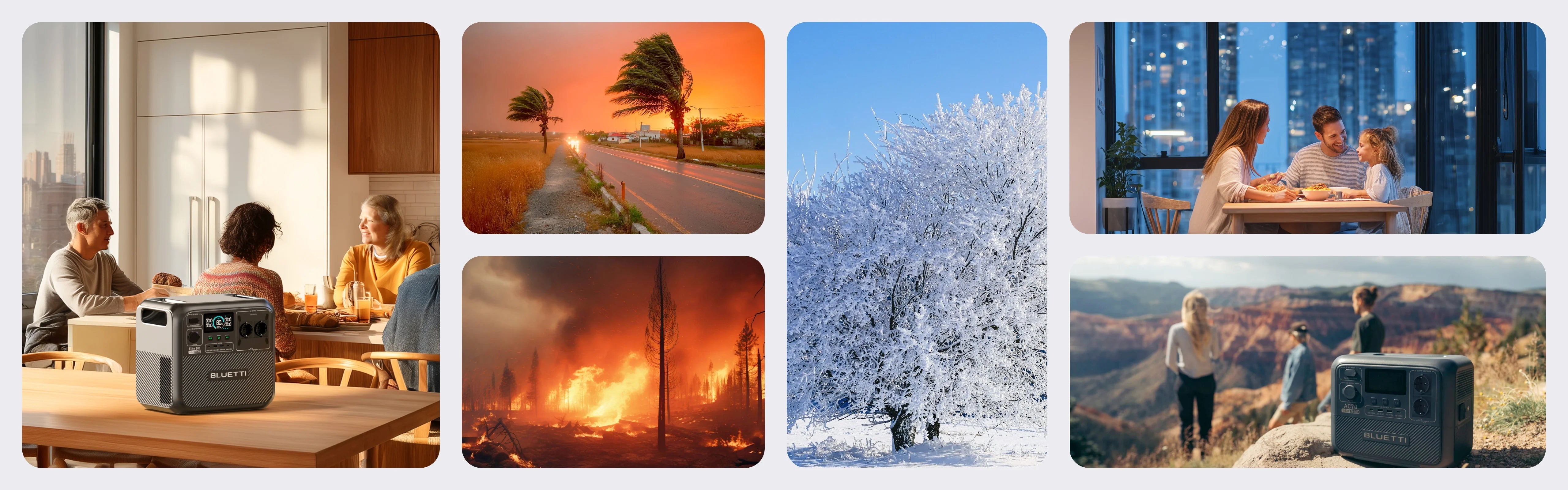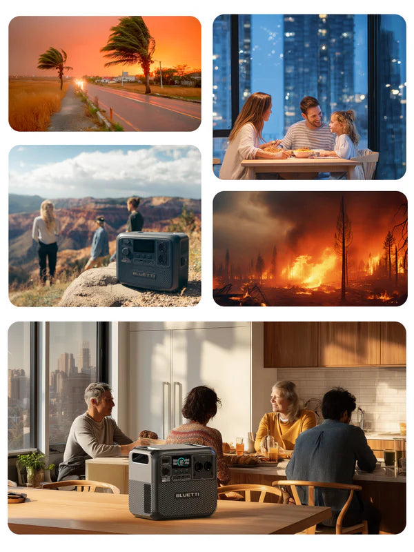 Aber mit BLUETTI wird Ihr Leben überhaupt nicht beeinträchtigt! Seien Sie auf Katastrophen vorbereitet – mit einer rund um die Uhr verfügbaren Notstromversorgung für Ihr Zuhause bei Überschwemmungen, Bränden, Stürmen und Stromausfällen.