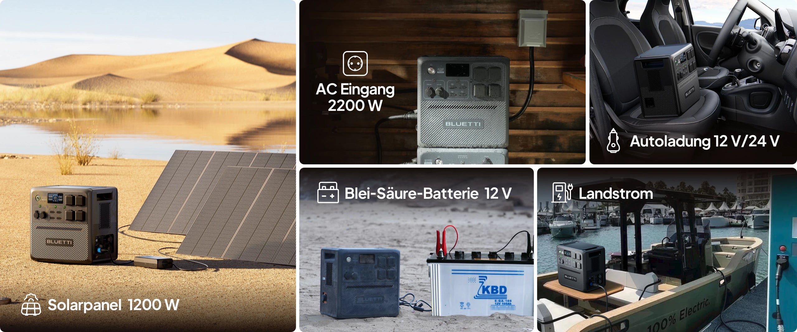 Hinweis: Für die Turboladung sind zusätzliche Kabel erforderlich (separat bei BLUETTI erhältlich).