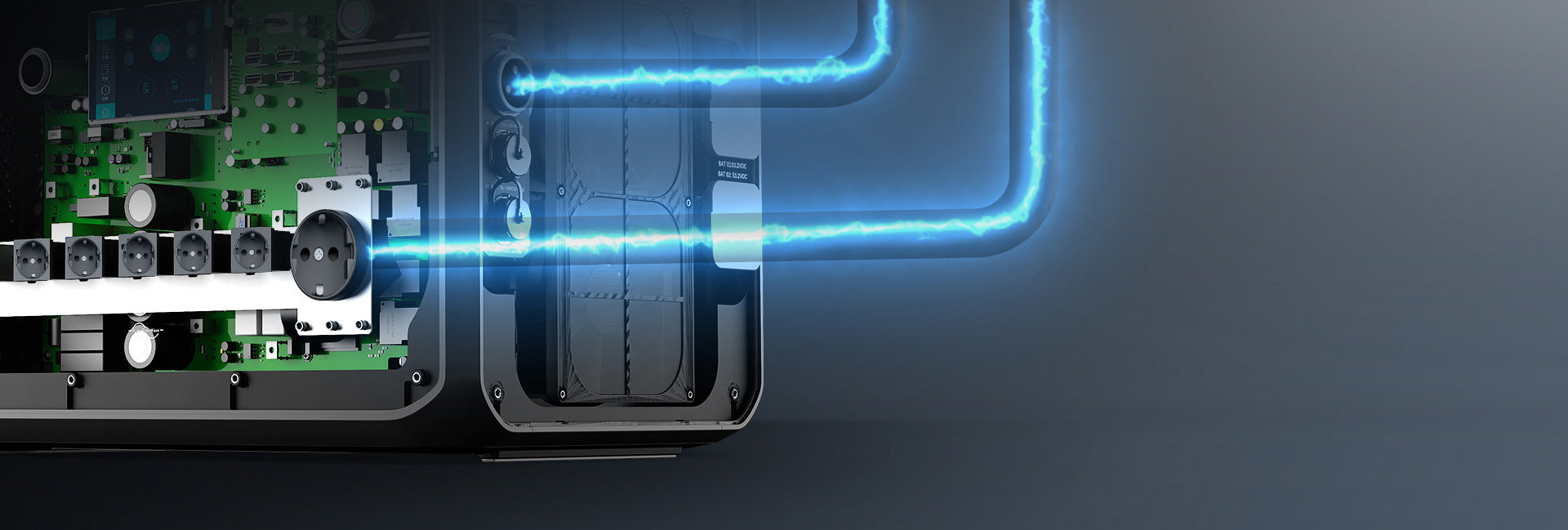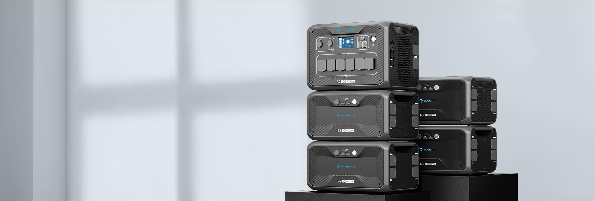 Eine einzelne AC300 kann mit bis zu vier B300-Akkus mit einer Kapazität von 12.288 Wh verbunden werden.