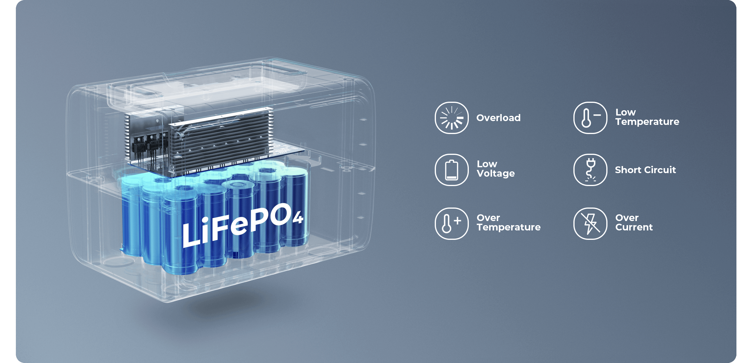 • LiFePO4-Akku mit über 2.500 Lebenszyklen bis zu 80 % Restkapazität