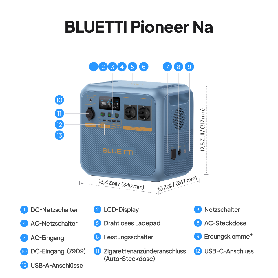BLUETTI Pioneer Na tragbare Powerstation (Sodium-ion) | 1.500 W, 900 Wh (Nur Für Deutschland) MANUAL